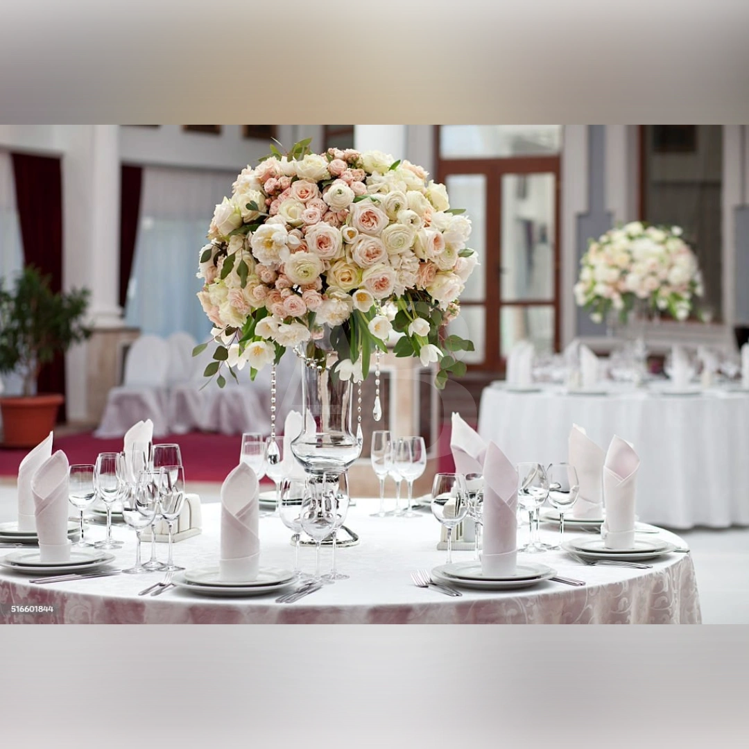 En tonos claros sobre base transparente de cristal, Con rosas en distintas tonalidades, Con hortensias y rosas, Con girasoles y rosas en tono blanco