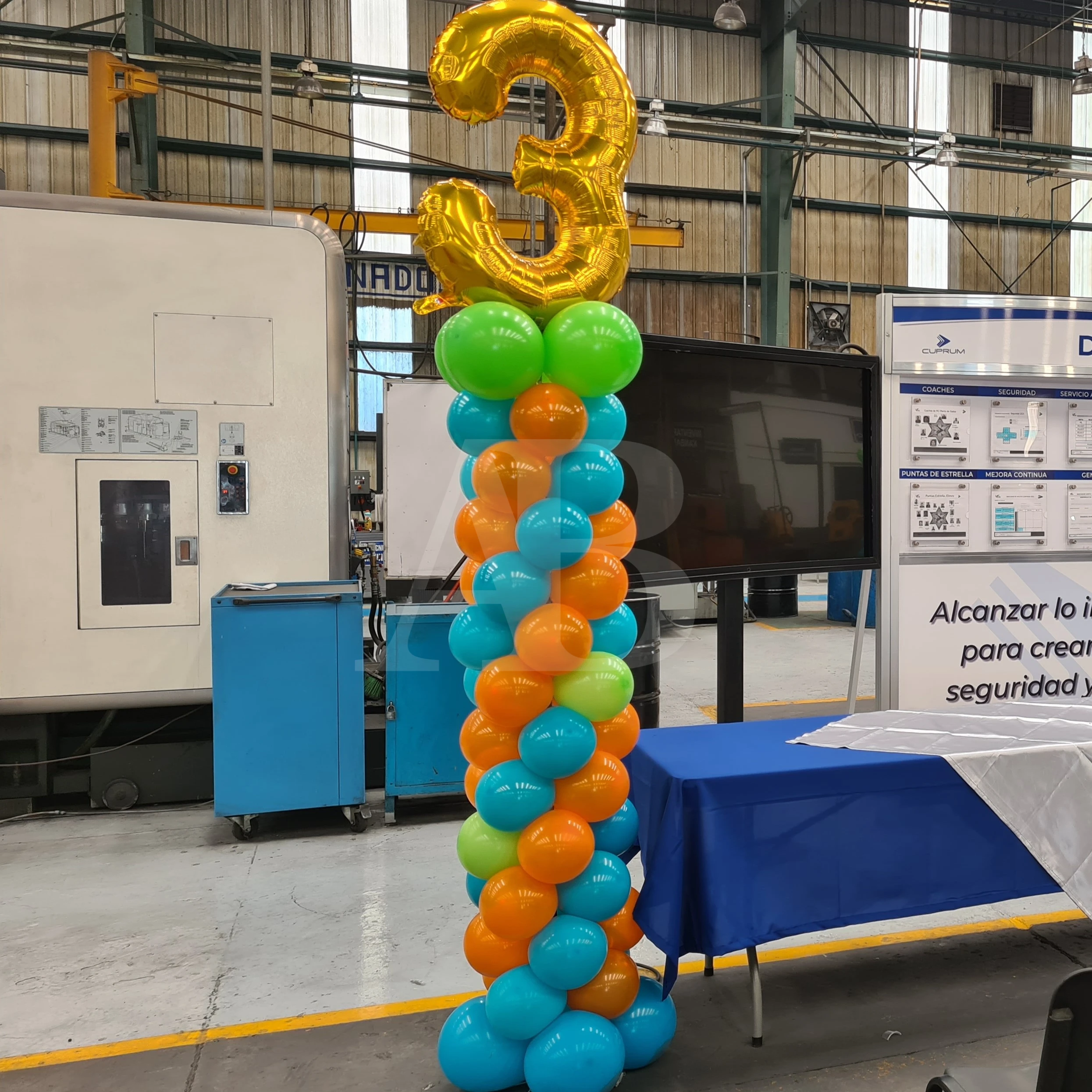 Torre de globo látex con numero metálico en la parte superior 2.20 m de altura.